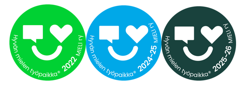 Olemme saaneet jo kolmatta kertaa peräkkäin MIELI ry:n Hyvän mielen työpaikka -merkin. Tunnustus kertoo, että meillä on hyvä olla ja työskennellä, ja panostamme vahvasti työkykyyn ja mielenturvaan. Teemme monimuotoisuusmatkaa. Olet tervetullut meille juuri sellaisena kuin olet.