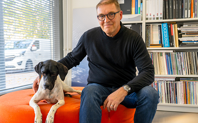 Työsuhde-etuna pääsee rapsuttelemaan myös toimiston koiria. Junturan metsästyskoira Joy pitää huolta oman työn tauotuksesta ja riittävästä ulkoilusta.
