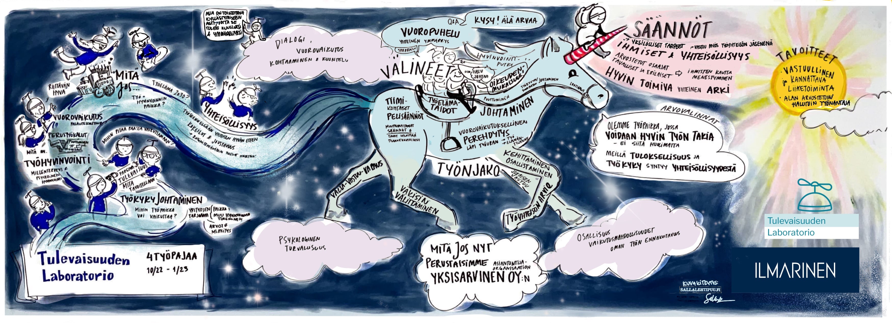 Tulevaisuuden laboratorio on vuosittain toteutettava sarja työpajoja, jossa pengomme ja kehittämme erilaisia työkykyjohtamisen käytäntöjä yhdessä asiakkaidemme kanssa. Viimeisin kolmen työpajan sarja päättyi tältä erää – mitä jäi opiksi ja vietäväksi työpaikan arkeen?