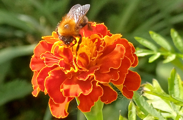 – Aika tavallinen hetki, kimalainen samettikukalla. Mutta ilahdun aina pölyttäjän nähdessäni, joten pääsi ilman muuta kesäkuvaan!