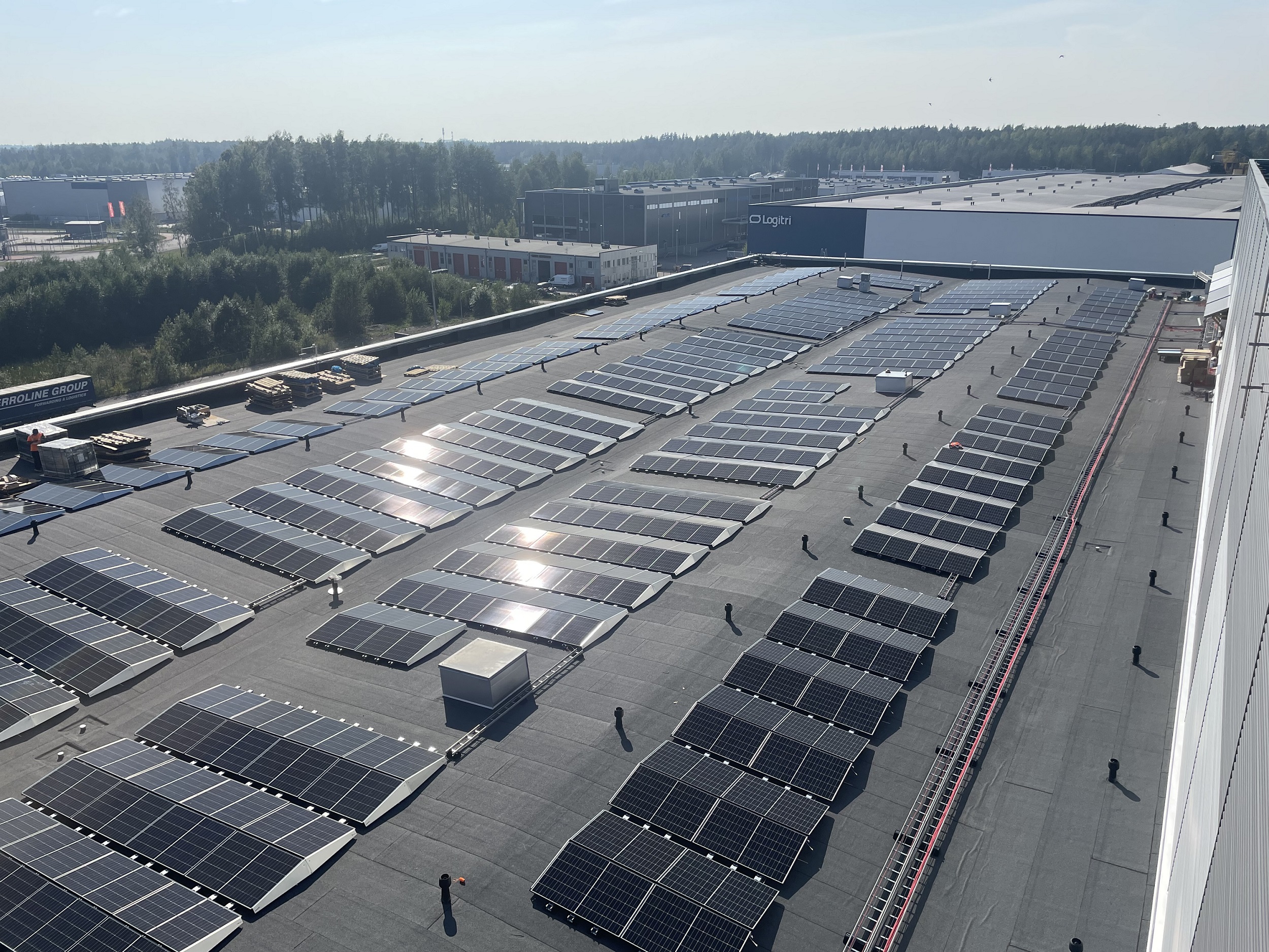 Stockmannin logistiikkakeskus Tuusulassa sai syksyllä katolleen suuren aurinkovoimalan: se kattaa noin 35 prosenttia rakennuksen sähkön kulutuksesta.