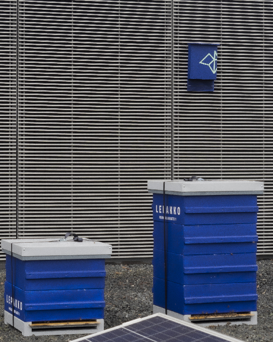 Mehiläispesät ja lepakonpönttö toimitalon katolla ovat konkreettinen esimerkki siitä, miten luonnon monimuotoisuuden suunnitelmaa toteutetaan.