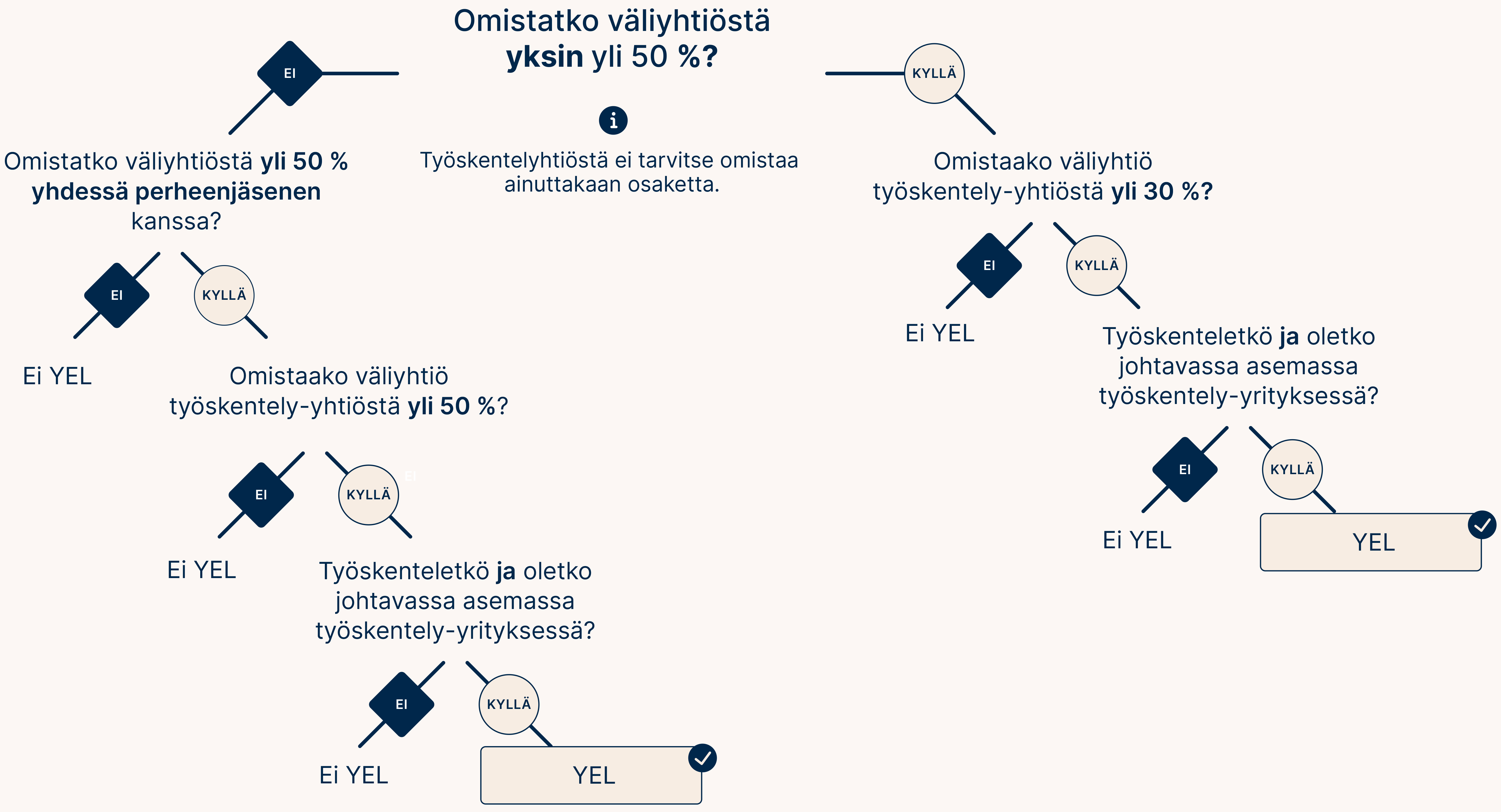 Kuvasta alla näet koskeeko YEL sinua, kun omistat työskentely-yritystäsi välillisesti.